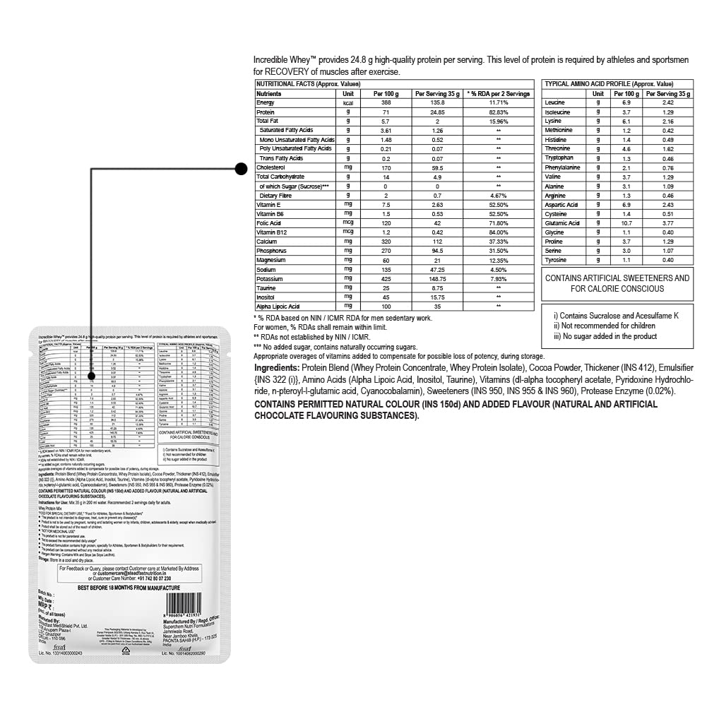 - ✔️ 24.8 g Fast Release Whey Proteins per sachet