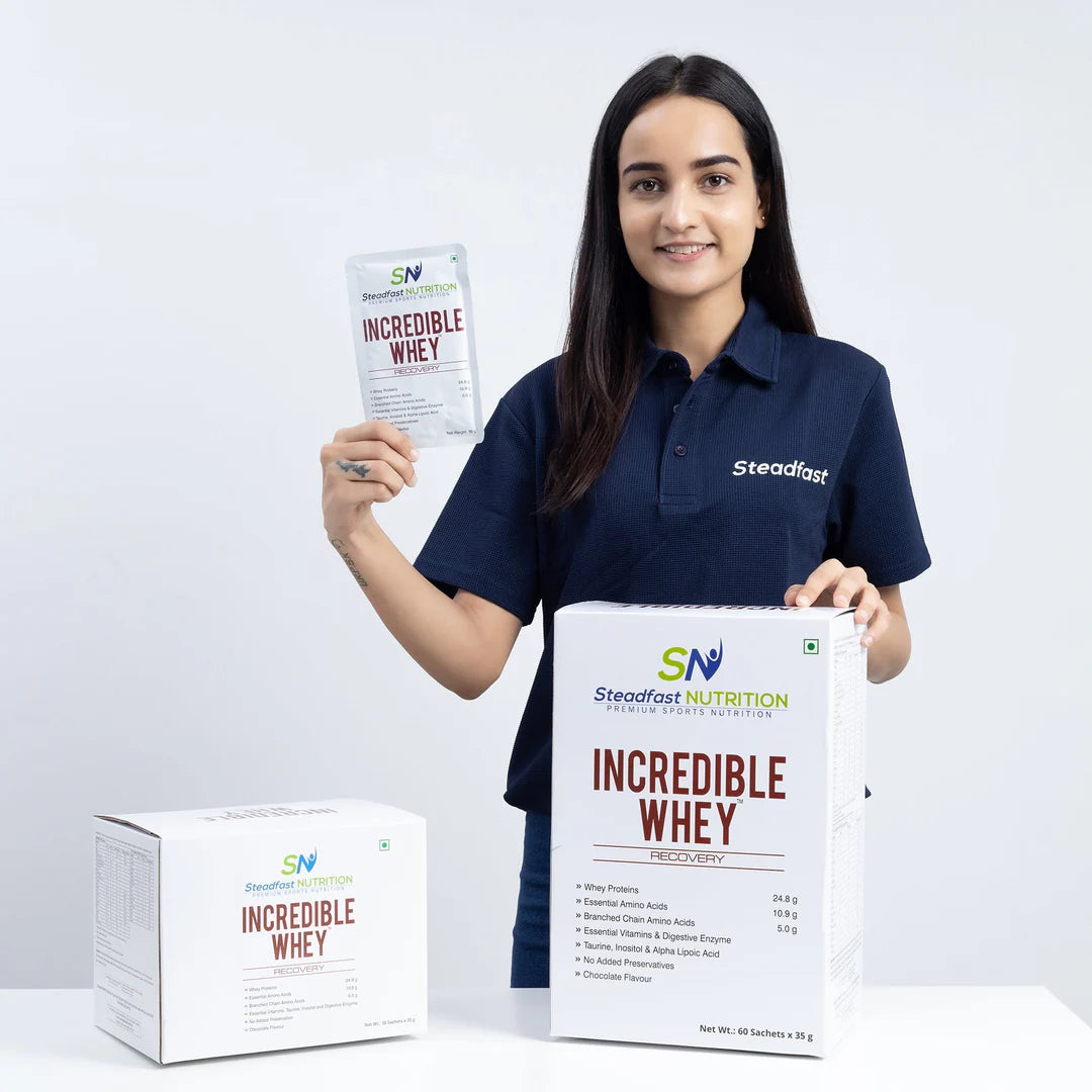 Fuel your workouts with Steadfast Incredible Whey, a premium blend of fast-release whey proteins designed for quick absorption and muscle recovery. Each sachet is 35 g, perfect for on-the-go convenience.